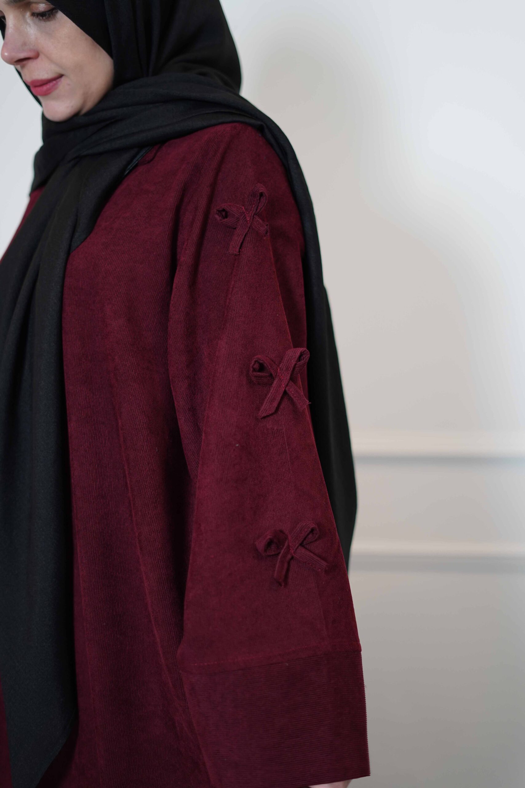 - جلو عبا بسته هست و یقه شومیزی با دو تا دکمه مخفی داره